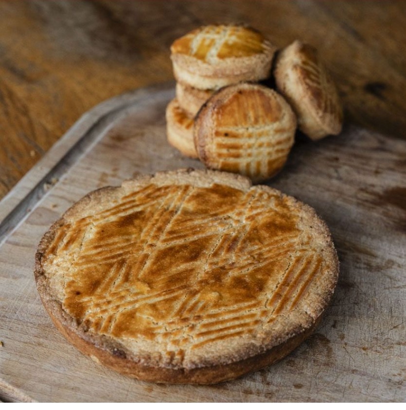 4 Gâteau Breton Sarrazin: Farine T55 bio, Farine de sarrasin bretonne, Levure chimique, Beurre Demi-sel, Sucre Roux, Oeufs, Allergène: (Calva). Conservation 8 jours dans une boîte hermétique