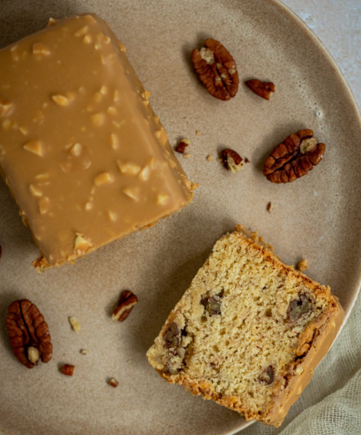 3 Cake Dulcey, Banane, Pécan: Beurre Demi-sel, Sucre Muscovado, Oeufs, Bananes, Farine T55 Bio, Levure, Rhum, Allergène : ( Noix de Pécan Bio), Pépites de Chocolat Lait Barry, Confiture de Lait. Conservation 8 Jours en Boîte Hermétique